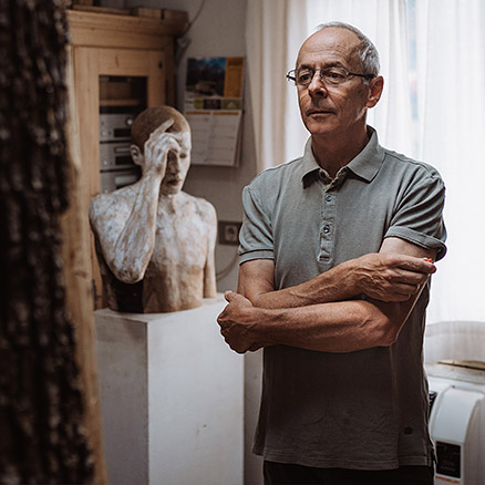 Bruno Walpoth‘s human figures created from limewood or walnut come about as a result of his meeting and dealing with models. On a scale of one-to-one, the bodies, lines and forms of the few young, gaunt men and the myriad of beautiful women take shape from the block of wood by means of his hands ...